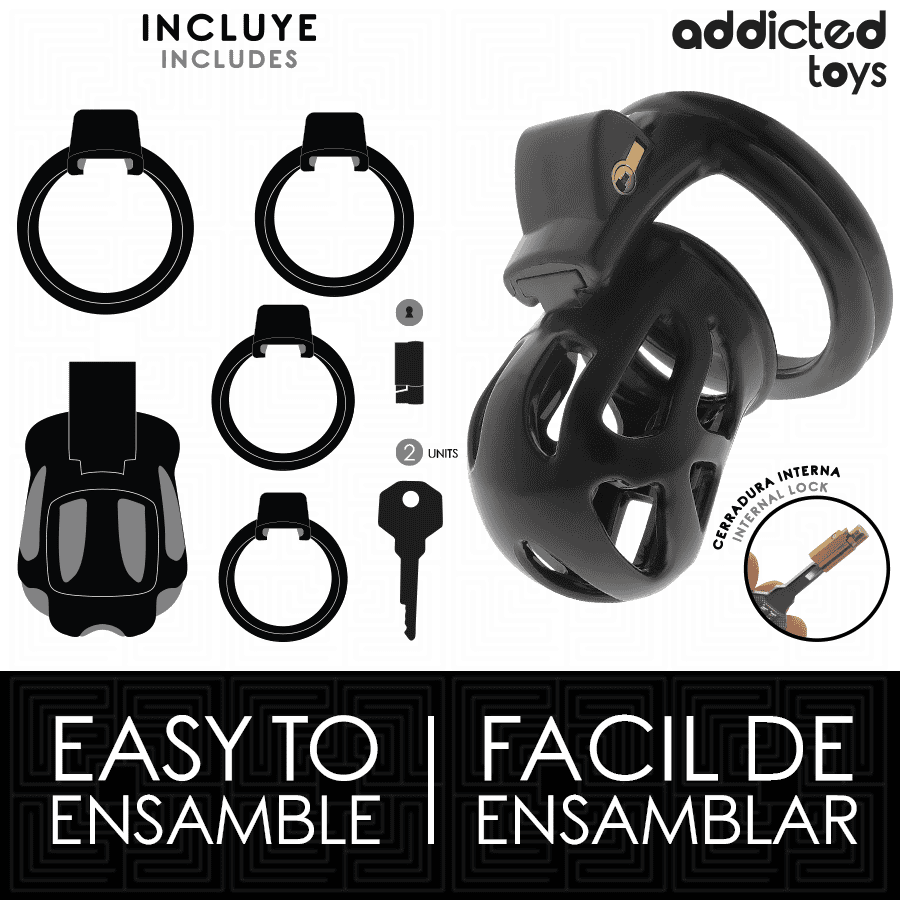 Tato klec na penis nabízí vyváženou kombinaci bezpečnosti, komfortu a spolehlivého zajištění. Konstrukce je navržená tak, aby seděla pevně, ale pohodlně i při delším nošení, a umožnila plynulý přechod do světa kontroly a odevzdání. Díky přiloženým čtyřem kroužkům v různých velikostech si vybereš, který ti padne nejlépe podle tvé velikosti.