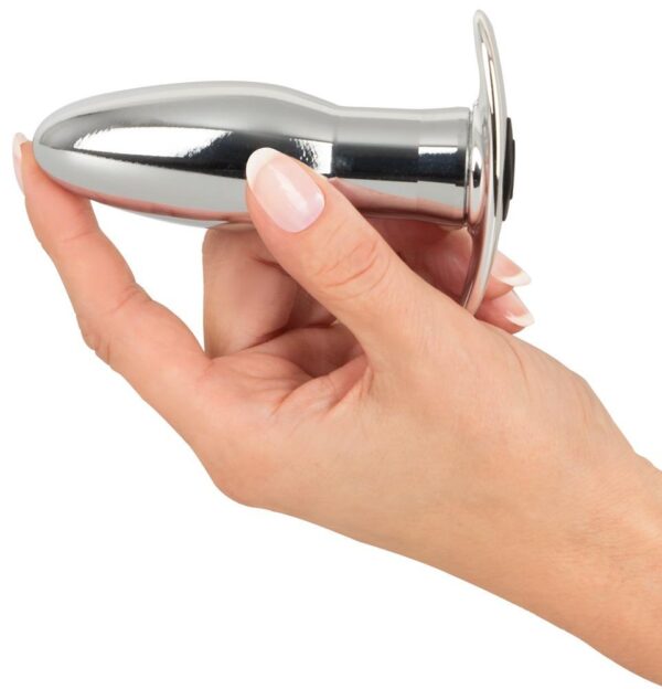 Heavy Metal pro úžasné anální potěšení! Leštěný kolík bez spojů Medium Metal Anchor Butt Plug s vibracemi od ANOS v designu klasického análního kolíku. 7 vibračních režimů poskytuje rozmanitou stimulaci a lze je snadno ovládat tlačítkem na hračce. Široká kotevní základna zaručuje bezpečnou manipulaci a zajišťuje, aby se kolík příliš nezasunul. Těžší kolík se díky tomu dá nosit i delší dobu.