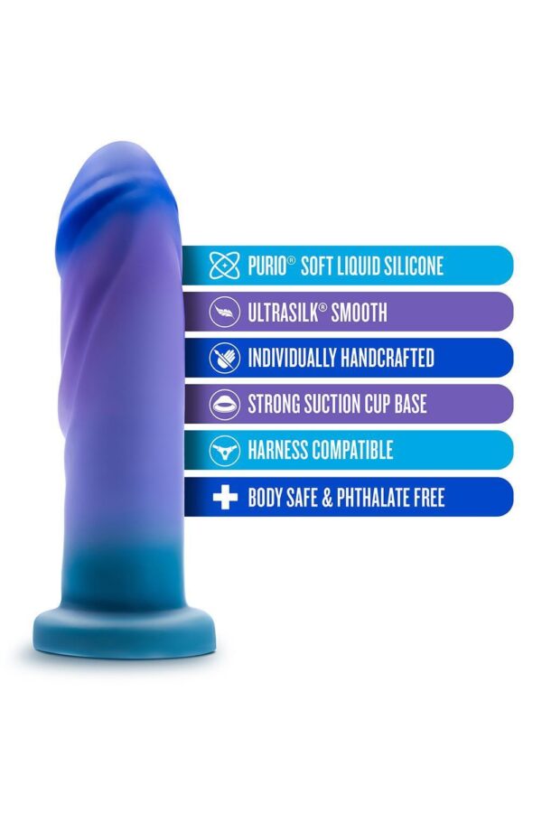 Moderní, stylové a krásné – seznamte se s Avant Midnight Rendezvous! Toto dildo je tvarované s ohledem na vaše maximální potěšení a pohodlí, vytvořené s odstíny modré a fialové, které vám přináší všechny intimní pocity temné půlnoční oblohy. Avant Midnight Rendezvous se chlubí tvarovanými vroubky a širokou hlavou pro maximalizaci vašeho potěšení z bodu G a bodu P během hry.