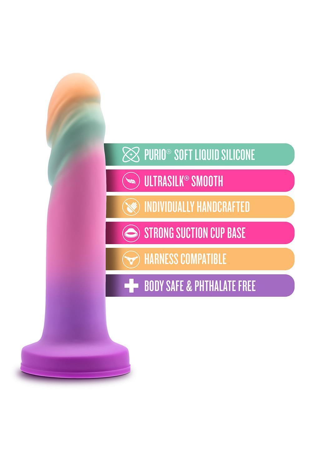 Moderní, stylové a krásné – seznamte se s Avant Sunrise Gaze! Toto dildo je tvarované s ohledem na vaše maximální potěšení a pohodlí, vytvořené s odstíny modré a fialové, které vám přináší všechny intimní pocity temné půlnoční oblohy. Avant Midnight Rendezvous se chlubí tvarovanými vroubky a širokou hlavou pro maximalizaci vašeho potěšení z bodu G a bodu P během hry.