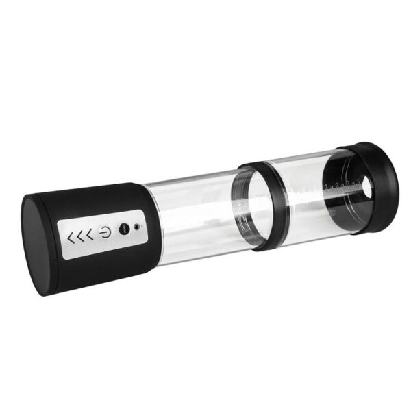 Kouzlo této vakuové pumpy tkví v tom, že její válec je rozkládací. Válec je lehce kónický. Tvoří ho dvě části, které do sebe v polovině zapadnou, a to pootočením v místech označených šipkou a ikonou zámku. Nejprve je však potřeba nanést mezi obě části lubrikační gel. Potom do sebe obě části válce zapadnou velmi snadno.