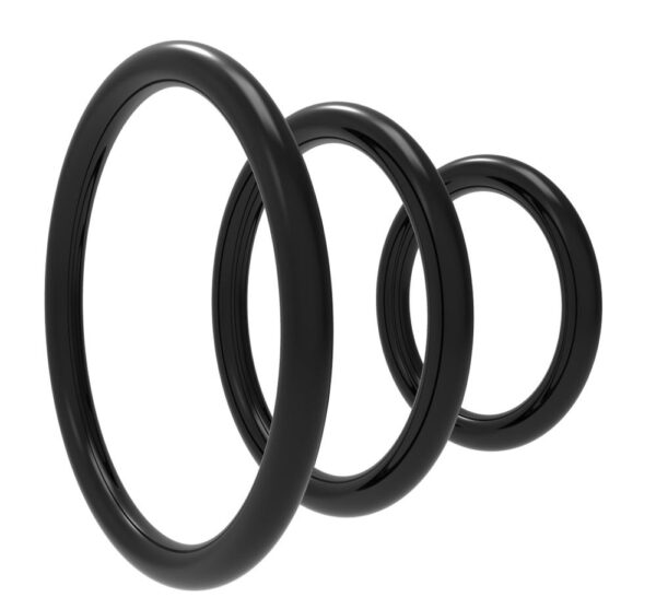 V této sadě najdete tři černé silikonové erekční kroužky s různým vnitřním průměrem.