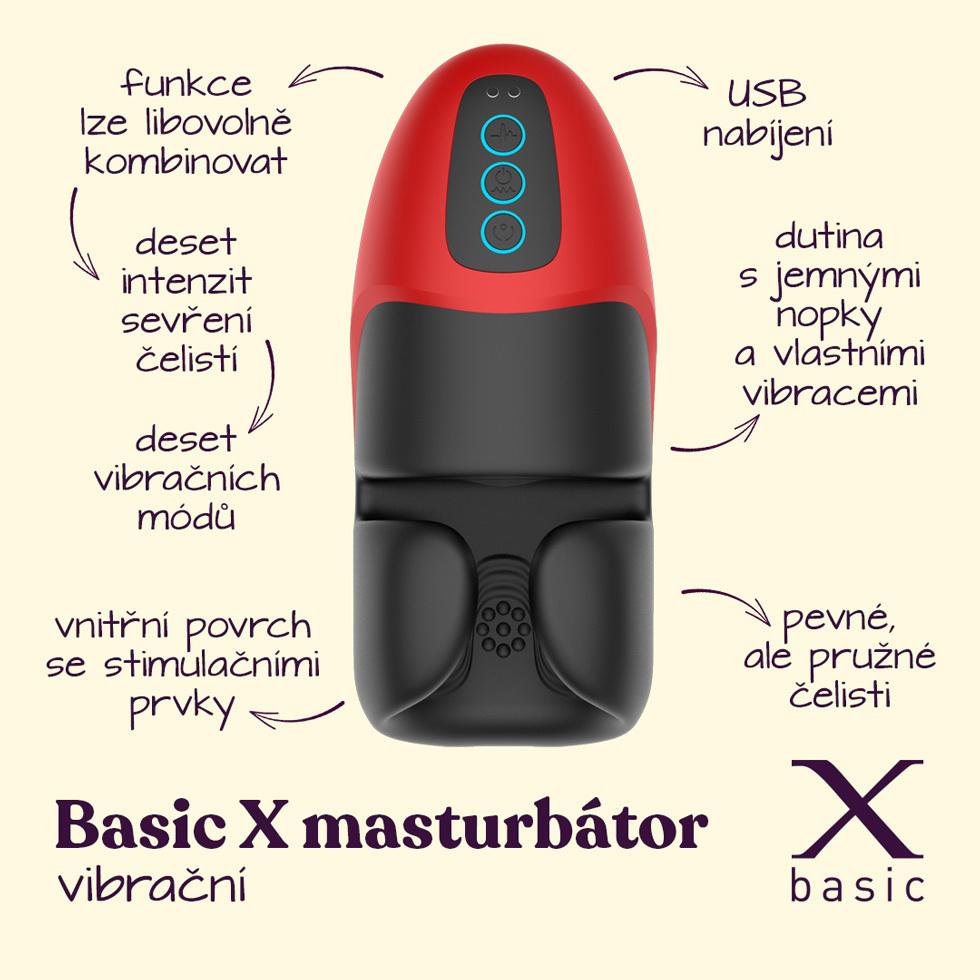 BASIC X Lena vibrační masturbátor je přesně ta hračka, která vám ukáže, jak vypadá opravdu intenzivní potěšení. Kombinuje silné sevření čelistí a hluboké vibrace, takže pocitově napodobuje orální i ruční uspokojení. Pružné čelisti se přizpůsobí a obepnou penis přesně tak, jak to máte nejraději – od jemného sevření až po pořádný stisk. Vybrat si můžete mezi 10 intenzitami sevření, 10 vibračními režimy čelistí a 10 vnitřními vibračními módy. Pro příjemnější masáž penisu je vnitřní dutina texturovaná jemnými nopky.