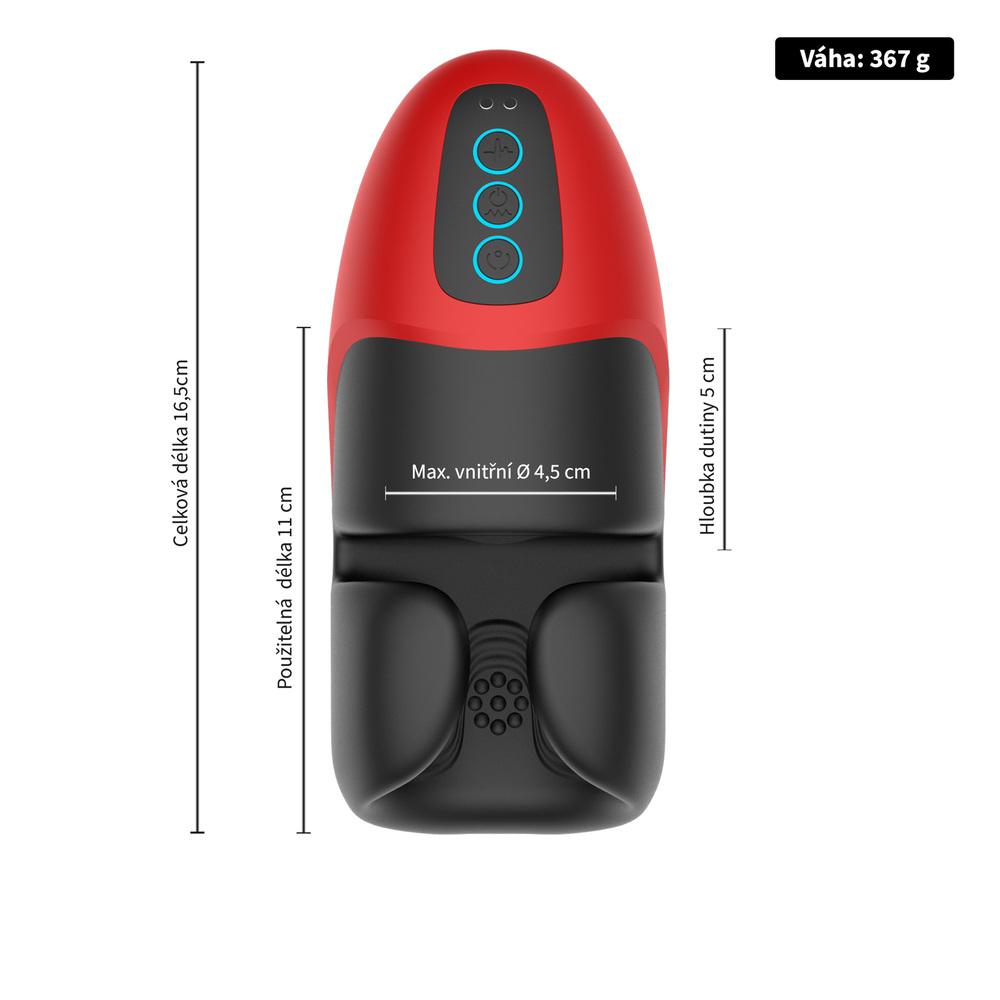 Realistická a intenzivní stimulace – pružné čelisti pevně obepnou penis a vibrují různými intenzitami.