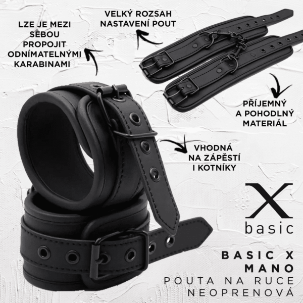 Pohodlná neoprenová pouta na ruce s přezkami. Pouta jsou spojená karabinkou. Tento ero-produkt BASIC X MANO pouta na ruce neoprenová (zařezená v: Erotické pomůcky | BDSM a fetiš | SM, BDSM, fetiš) je nabídce velkého sexshopu. Aktuální cena (389 Kč) je včetně 21 % DPH. Více informací je přímo na e-shopu: