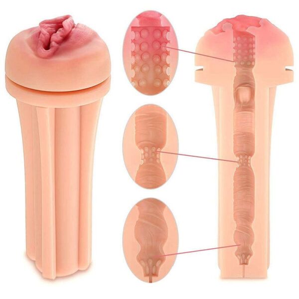 Masturbátor vzhledu opravdové vaginy je vyrobený z nového SEBS materiálu. Tento materiál věrně imituje lidskou pokožku, je velmi elastický a poddajný, snadno přejímá teplotu. Vnitřní kanálek masturbátoru má průměr cca 1,5 cm, ale díky vlastnostem materiálu penis snadno vnikne dovnitř. V nejširší části se do masturbátoru vejde penis i o průměru 7 cm. obal masturbátor se postupně zužuje, v nejužší části počítejte s max. průměrem 5 cm.