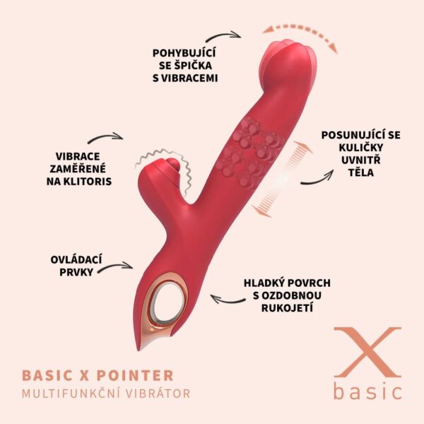 Vibrátor s pohyblivou špičkou a kuličkami. Tento ero-produkt BASIC X Pointer multifunkční vibrátor červený (zařezená v: Sexuální a erotické pomůcky | Vibrátory a dilda | Vibrátory) je nabídce velkého sexshopu. Aktuální cena (1199 Kč) je včetně 21 % DPH. Více informací je přímo na e-shopu: