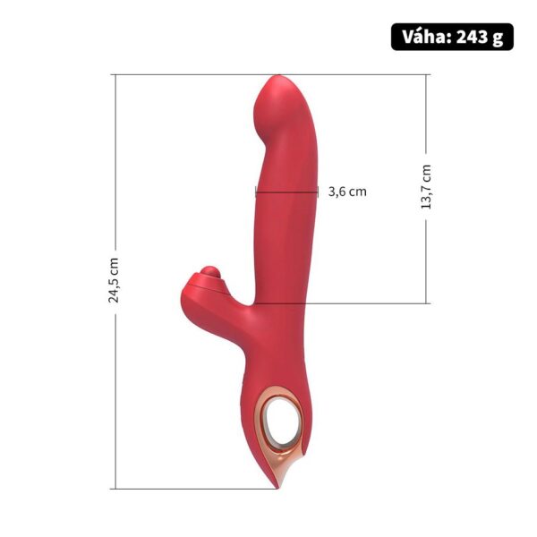 Vibrátor se ovládá třemi tlačítky. Samostatně můžete spustit vibrace delší nebo kratší části nebo pohyb špičky a kuliček. Nebo spusťte všechny funkce najedou a užijte si rychlou cestu k orgasmu.