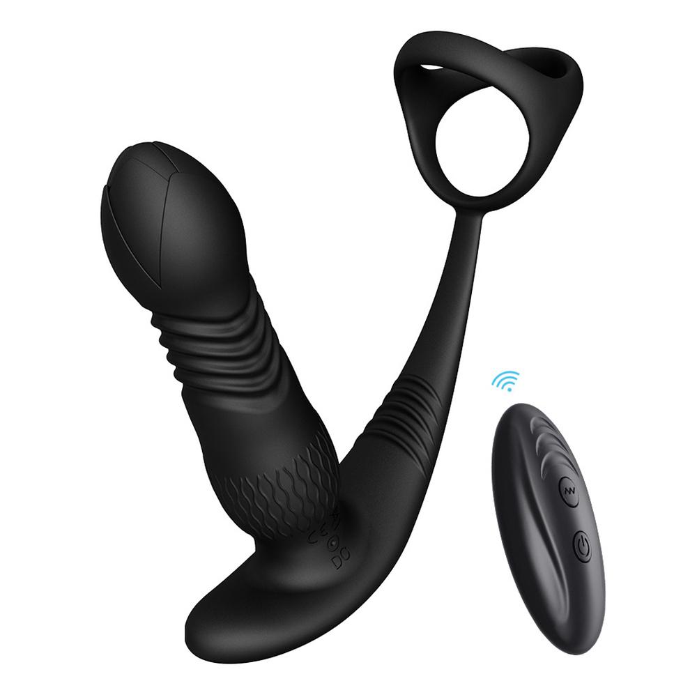 Základna kolíku je protažená do erekčního kroužku, kterým můžeš protáhnout penis i varlata. Vroubkovaná pružná část zároveň masíruje hráz, čímž se celkový zážitek násobí. Vibrace a přírazy běží současně – díky čemuž je stimulace opravdu komplexní.