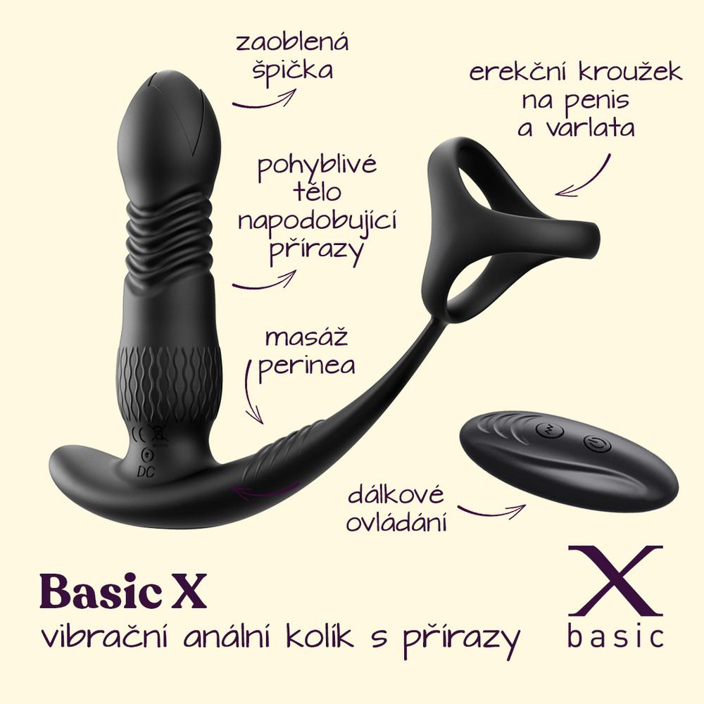 BASIC X vibrační anální kolík to umí rozjet – nejenže vibruje, ale i skutečně „přiráží“. Pohyblivá špička se zasouvá a vysouvá v rytmu 10 různých režimů, které si můžeš kdykoli přepnout – a to jak přímo na kolíku, tak pomocí dálkového ovladače.