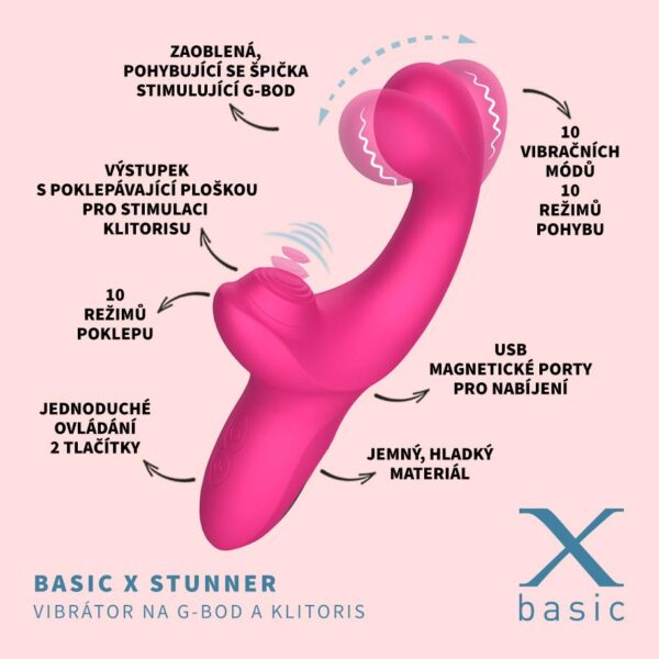 BASIC X Stunner vibrátor na G-bod a klitoris růžový