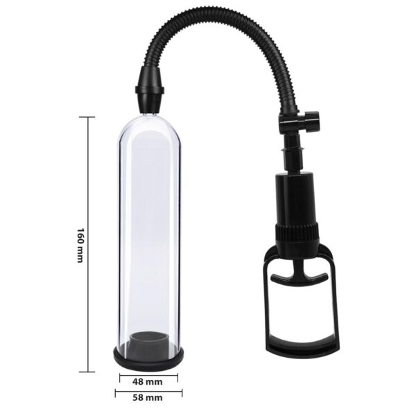 Jednoduchá vakuová pumpa pro muže se snadným ovládáním pomocí rukojeti. Je vhodná pro všechny muže, kteří potřebují pomocníka ke zvětšení penisu, dosažení erekce a tréninku topoření.