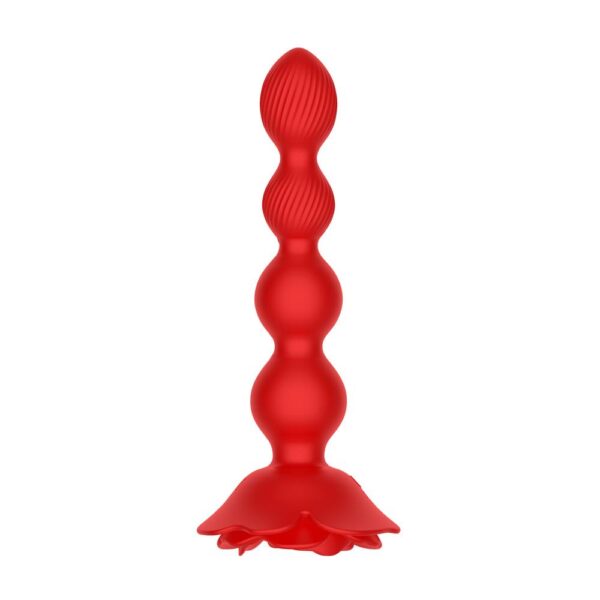 Vibrační anální korále s originální ozdobou, kterými ozdobíte svůj zadeček. Na první pohled zaujmou nejen krásně červenou barvou, ale především svou základnou ve tvaru květiny, které nechybí ani okvětní lístky. To vše z úžasně jemného silikonu.