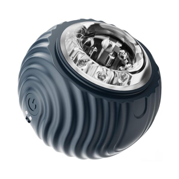 Co se skrývá v té modré kouli? To nikdo na první pohled nepozná, ale je to masturbátor! Plastová koule má ze dvou stran víčka a ty když lehkým pootočením sundáte, objeví se měkká vložka masturbátoru vyrobená z TPE materiálu. Masturbátor je z obou stran otevřený. Vložka má na vnitřní straně spoustu výstupků.
