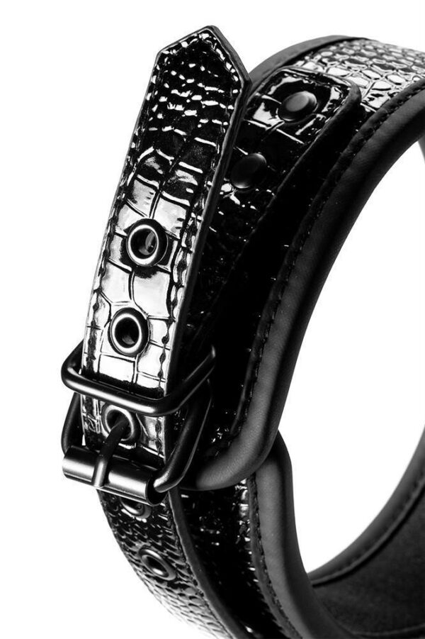 Tento obojek vyrobený z neoprénu a potažený umělou krokodýlí kůží. Je nastavitelný, a to na obvod krku cca 35 – 50 cm. Šířka obojku je 5 cm.
