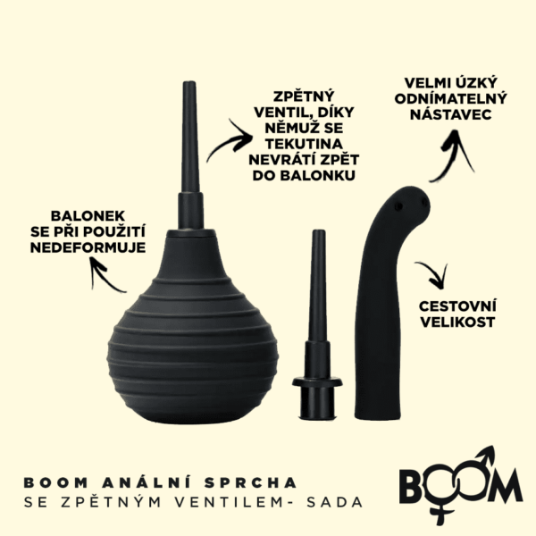Anální sprcha se zpětným ventilem a speciálním nástavcem. Objem 220 ml Tento ero-produkt BOOM anální sprcha se zpětným ventilem – sada (zařezená v: Erotické pomůcky | BDSM a fetiš | SM, BDSM, fetiš) je nabídce velkého sexshopu. Aktuální cena (449 Kč) je včetně 21 % DPH. Více informací je přímo na e-shopu: