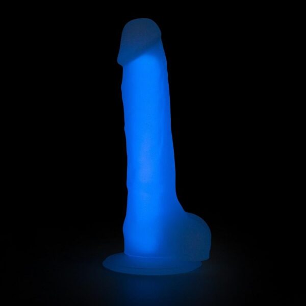 Dildo má i další překvapení. Ve tmě svítí. Jak to funguje? Nechte na dildo minimálně několik minut působit světlo (denní nebo umělé). Čím déle necháte světlo působit, tím intenzivněji vám bude dildo ve tmě svítit.