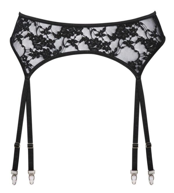 Černý podvazkový pás od značky Cottelli LINGERIE z květinové krajky se stříbrnými detaily. Je měkký a pružný pro maximální pohodlí. S celkem 8 nastavitelnými podvazkovými pásky (4 páry). Zapínání na háček na zadní straně lze také upravit podle potřeby.
