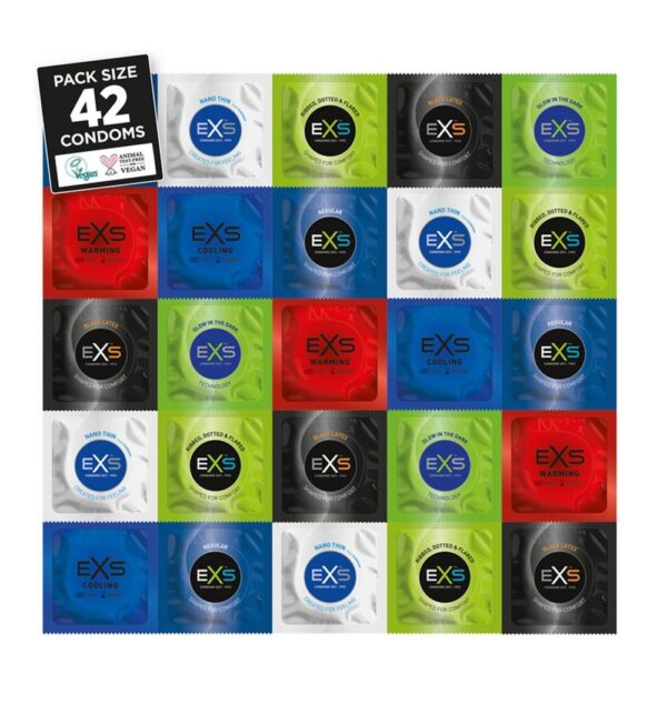 Balení obsahuje 7 různých typů kondomů značky EXS. Zpestřete si svoje sexuální hrátky. Tento ero-produkt EXS Variety 42 ks (zařezená v: Erotické pomůcky | Erotická kosmetika a kondomy | Kondomy, prezervativy) je nabídce velkého sexshopu. Aktuální cena (319 Kč) je včetně 21 % DPH. Více informací je přímo na e-shopu: