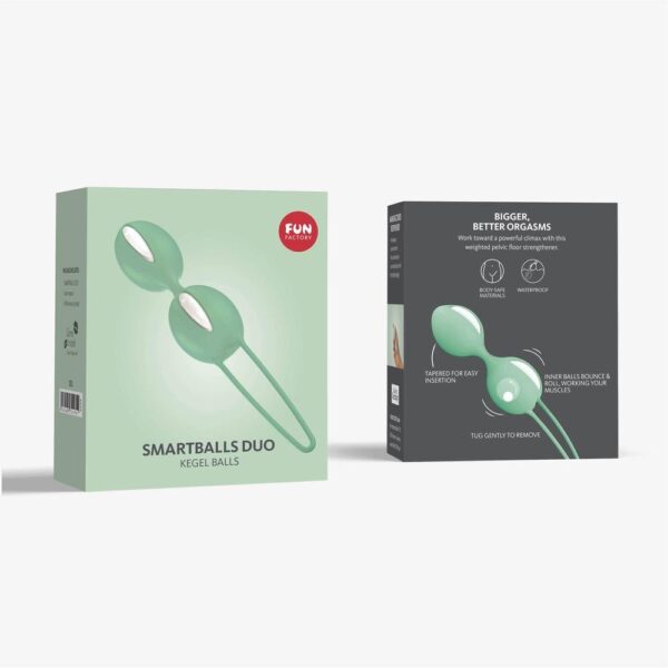 Smartballs Duo jsou velice kvalitní venušiny kuličky od německé značky Fun Factory, fungující na standardním principu = uvnitř obou kuliček jsou dutiny a v každé z nich se pohybuje těžká kulička s menším průměrem. Při pohybu pánve se vnitřní kuličky uvedou do houpavého nebo krouživého pohybu a ten se zpětně přenáší ven do vagíny a pánevních svalů.