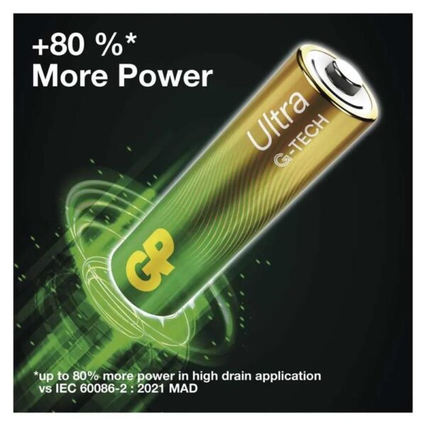 Vylepšená řada GP alkalických baterií ULTRA přináší nárůst výkonu a nepřetržitého provozu až o 80 %, čímž je ideální pro dlouhé chvíle strávené s rodinou a další aktivity, které vyžadují spolehlivý zdroj energie. Navrženy s důrazem na zlepšení výkonu a účinnosti, budou baterie ULTRA jedinečnou volbou.
