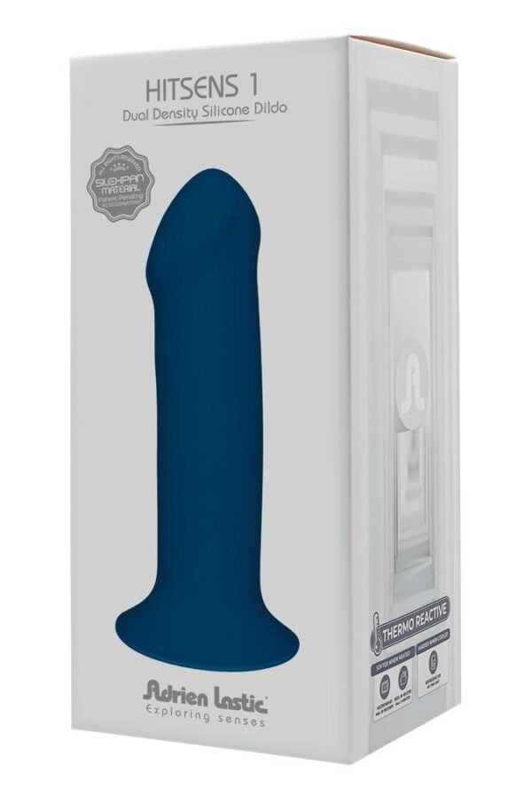 Toto jednoduché a krásné dildo Hitsens 1 od Adrien Lastic má jen mírně tvarovaný žalud a je vyrobeno ze silikonu, typ Silexpan. Dildo lze vložit do mikrovlnné trouby (30 sekund) nebo horké vody (max. 2 minuty), aby se zahřálo. Následně jeho povrch změkne. Pokud dildo ochladíte například v lednici, ztvrdne.