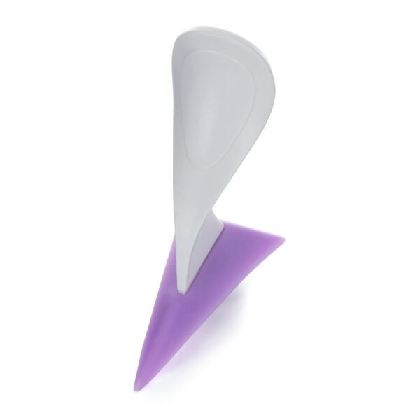 Set obsahuje silikonovu šablonu s odnímatelnou rukojetí a dále malé holítko.