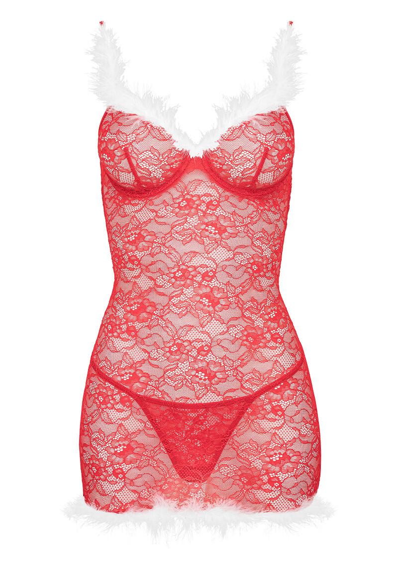 Červená krajková košilka s bílým lemováním pro vánoční večery ve dvou. Tento ero-produkt Kotek Kristinella košilka a tanga: S/M (zařezená v: Erotické pomůcky | Erotické oblečení, prádlo a doplňky | Dámské erotické prádlo | Dámské erotické soupravy) je nabídce velkého sexshopu. Aktuální cena (679 Kč) je včetně 21 % DPH. Více informací je přímo na e-shopu: