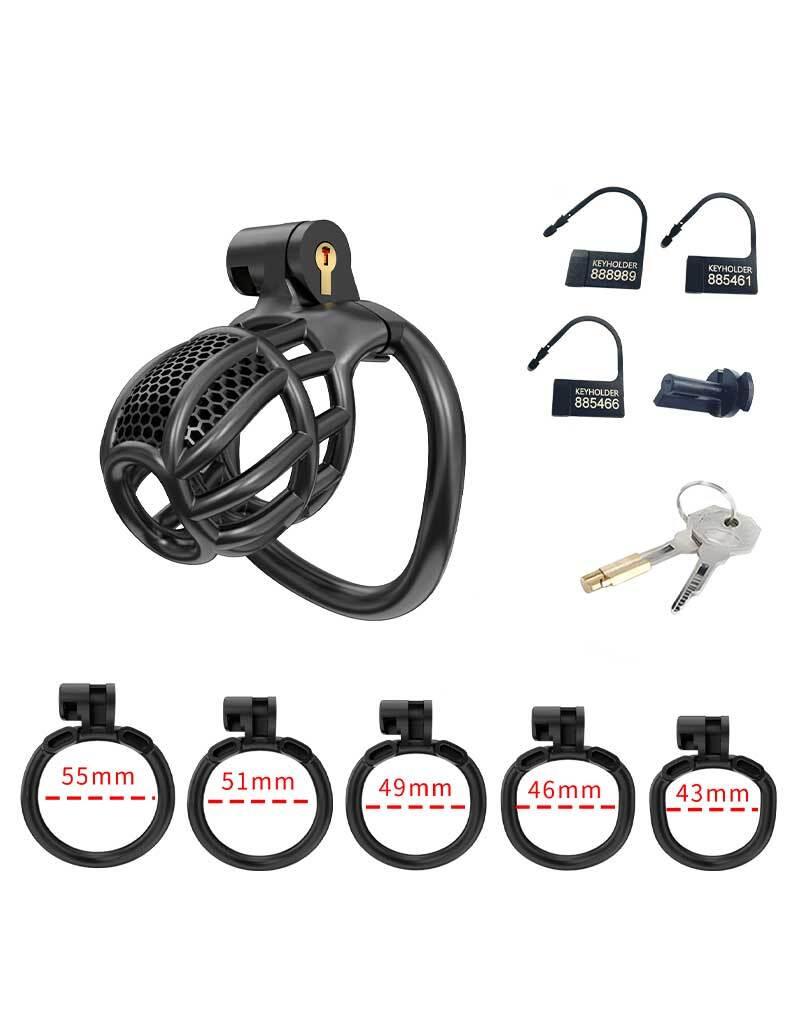 Plastový pás cudnosti pro muže, tzv. klec na penis. Velikost S má délku 5,5 cm. Tento ero-produkt P-CAGE PC06 Klec na penis S – černá (zařezená v: Erotické pomůcky | Erotické pomůcky pro muže | Návleky, nástavce a kroužky na penis) je nabídce velkého sexshopu. Aktuální cena (1295 Kč) je včetně 21 % DPH. Více informací je přímo na e-shopu: