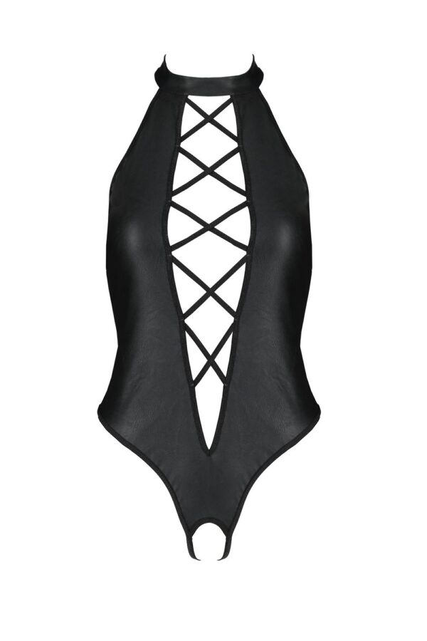 Černé body Nancy kombinuje špetku neslušnosti i jemnosti. To vše díky materiálu napodobujícímu kůži a hlubokému výstřihu, který perfektně sedí. Překřížené pásky jsou velmi sexy a evokují klasický korzet. Mohlo by to být smyslnější?