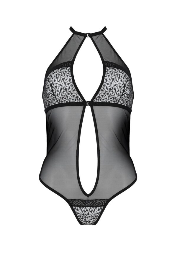 Sexy body, které vypadá úžasně na každé ženské postavě. Je vyrobeno z elastického tylu, který dokonale obepíná postavu a zvýrazňuje její křivky. Přední stranu zdobí krajkové vsadky. Body má atypický střih. Zepředu má zapínání u krku a mezi prsy. Pomalé rozepínání a obnažování se přímo nabízí. Nicméně aby prádlo dobře drželo a hezky obepínalo postavu, má vzadu nastavitelné popruhy.