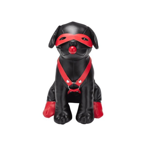 Tento pejsek je z černé hladké umělé kůže, má na sobě postroj s kovovými O-kroužky, odnímatelný roubík a masku na oči! Je tak akorát velký na mazlení, ale nezabere moc místa! Přidejte jej do své sbírky, abyste si s ním mohli hrát nebo jej dejte svému submisivovi do péče!