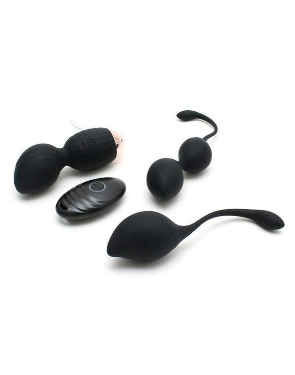 Tato luxusní sada obsahuje Vibrační vajíčko na dálkové ovládání a dva tipy Kegelových kuliček s různým tvarem a vahou. Uvnitř Kegelových kuliček je další pohyblivá kulička. Kuličky jsou voděodolné a díky tomu si můžete zpříjemnit i chvilky ve vaně nebo wellness.