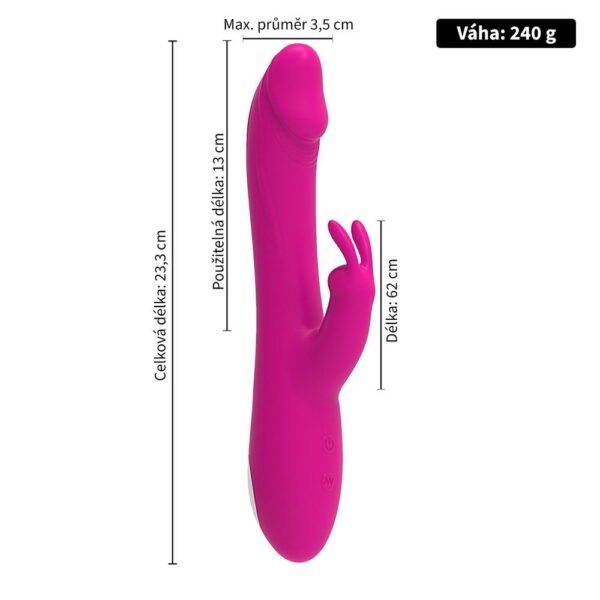 Kratší část je flexibilní a zůstává vně těla, kde králíček svým vrnícím čumáčkem hýčká klitoris. Králíček má svůj vlastní motor, takže silně vibruje, také v 10 módech.