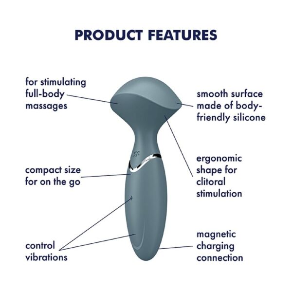 S masážní hlavicí Satisfyer Mini Wand-er vyrobenou ze silikonu se nemusíte obejít bez orgasmů ani na cestách. Přístroj je se svým kompaktním designem vhodný jak pro stimulaci klitorisu, tak pro klasickou masáž ztuhlých svalů.