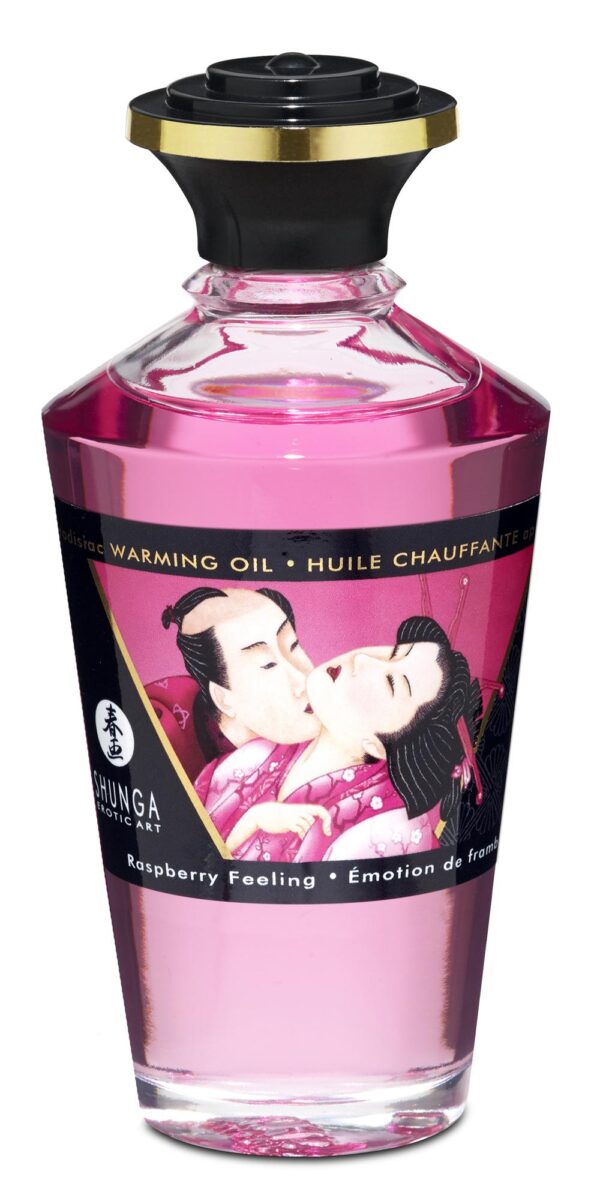 Jak se dostat na samý vrchol potěšení? Vyzkoušejte erotickou masáž hřejivým masážním olejem Shunga obohaceným  vůní malin.