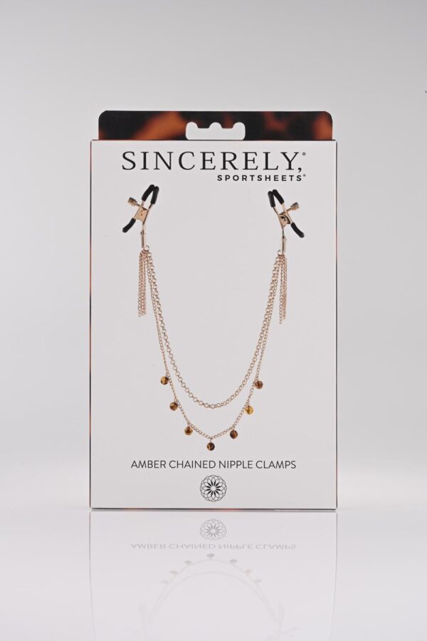 Kovové utažitelné svorky – skřipce s ozdobnými korálky a řetízky. Tento ero-produkt Sportsheets Sincerely Amber Chained Nipple Clamps (zařezená v: Erotické pomůcky | BDSM a fetiš | SM, BDSM, fetiš) je nabídce velkého sexshopu. Aktuální cena (349 Kč) je včetně 21 % DPH. Více informací je přímo na e-shopu:
