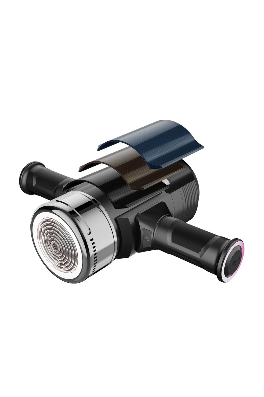 Na „řídítkách“ inspirovaných motocyklem je intuitivně umístěno tlačítko pro zapnutí a vypnutí funkce burst (okamžitý nával maximální intenzity zapnutých funkcí).