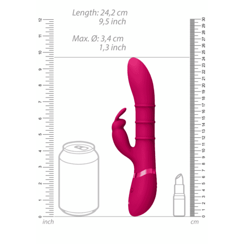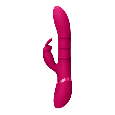 Značka VIVE je známá velice silnými vibracemi a znamená dokonalou stimulaci prostřednictvím neustálých inovací! Rabbit vibrátor SORA pro bod G se může pochlubit jedinečnou funkcí, díky které budete vzdychat v extázi! SORA má 3 stimulační kroužky integrovaných do hladké, silikonové hřídele, které se pohybují nahoru a dolů a zajišťují vnitřní stimulaci stěn vagíny. Kroužky mají 10 různých rychlostních režimů, zatímco vibrátor a vnější výstupek pro klitoris mají 10 různých vibračních režimů, což vám dává na výběr z ohromujících 1 000 různých nastavení.