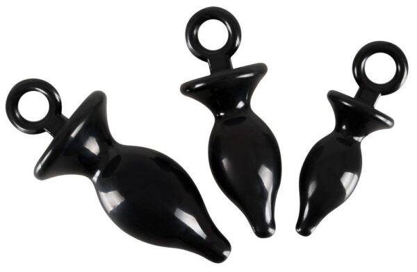 Obsahuje tři anální kolíky v různých velikost (S – L), které mají velmi úzkou špičku, rozšířenou základnu a praktické poutko pro snadnou manipulaci.